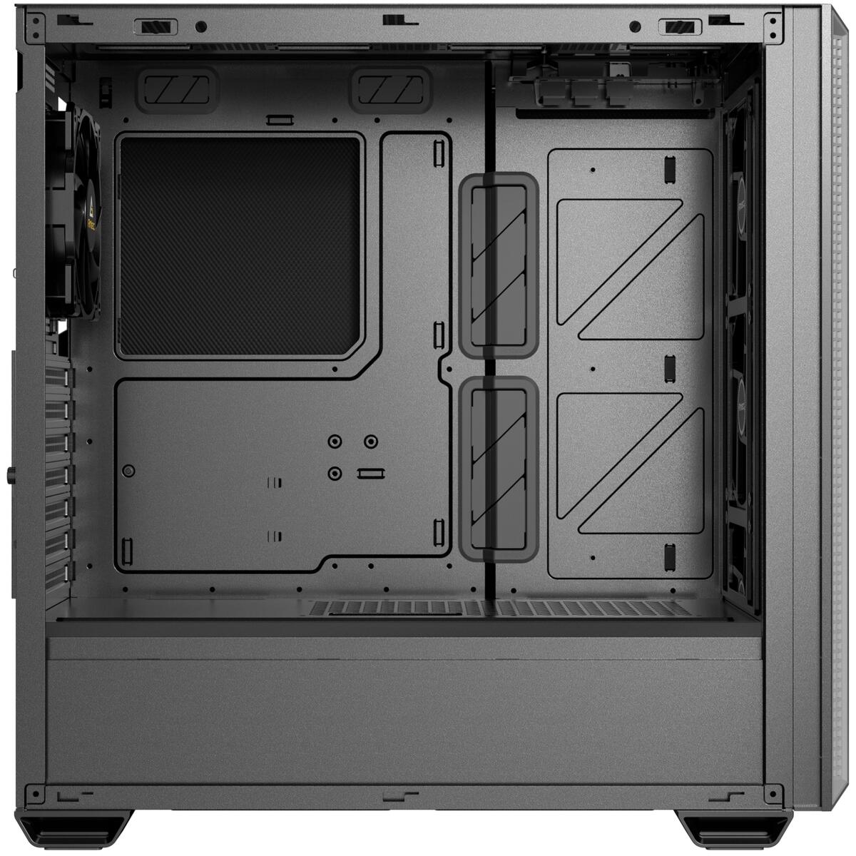 - Fan Positions: Front: 3× 120mm / 2× 140mm | Top: 3× 120mm / 2× 140mm | PSU Shroud: 2× 120mm | Rear: 1× 120mm