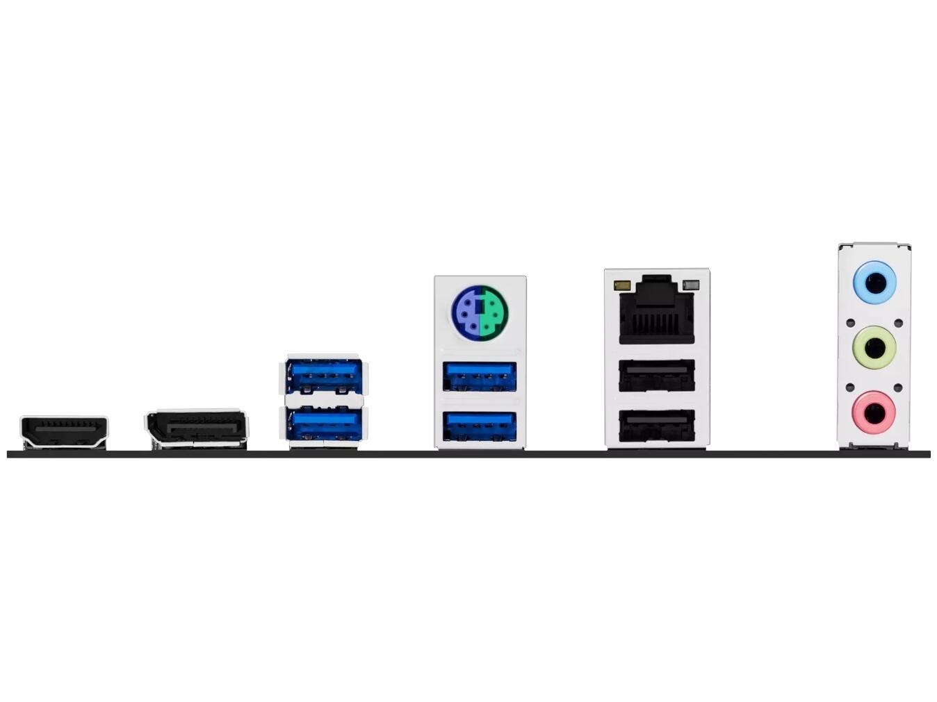 - Rear: 1x DisplayPort | 1x HDMI 2.1 | 4x USB 5Gbps Type-A | 2x USB 2.0 | 1x PS/2