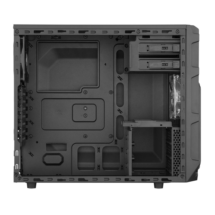Despite its age, the SPEC-03 holds up well on hardware clearances. GPUs up to 426mm fit comfortably — enough headroom for virtually any current-generation card. CPU coolers up to the case’s height limits are well accommodated, and the six fan mounting positions (2× front 140/120mm, 2× top 120mm, 1× rear 120mm, 1× bottom 120mm) leave plenty of room to expand cooling capacity. Storage is a strong point: three 3.5″ hard drive bays, two 2.5″ SSD bays, and two 5.25″ optical drive bays cover both modern and legacy storage needs. All drive installation is tool-free. Cable routing cutouts and a CPU cooler backplate cutout round out the builder-friendly interior.