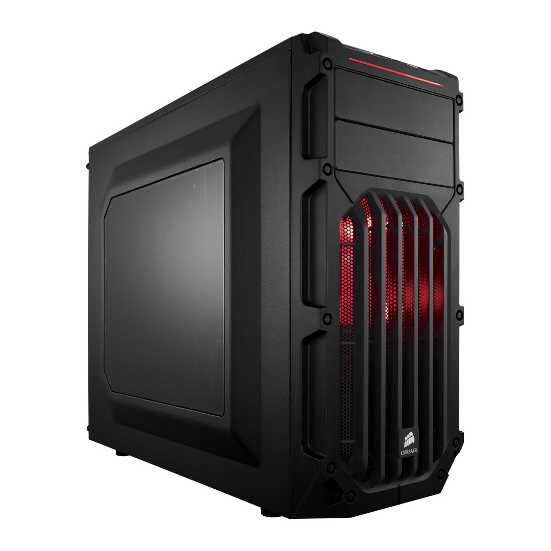 An aggressively styled ATX Mid Tower from Corsair’s Carbide Series, featuring two pre-installed 120mm orange LED front intake fans, a large windowed side panel, and support for up to six fans total. The SPEC-03 supports ATX, Micro-ATX, and Mini-ITX motherboards with an impressive 426mm GPU clearance and tool-free drive installation — a no-frills gaming chassis built around airflow and practical usability.
