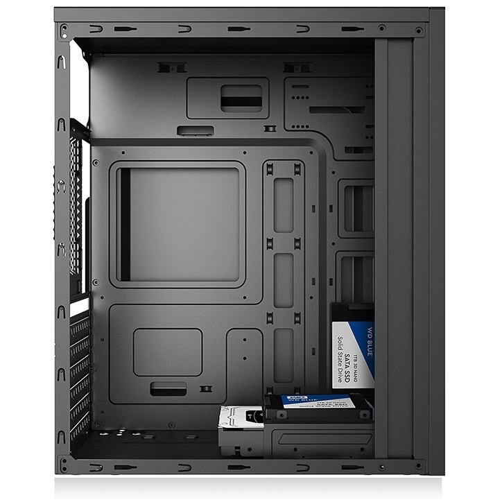 - Drive Bays: 1× 3.5″ HDD, 2× 2.5″ SSD