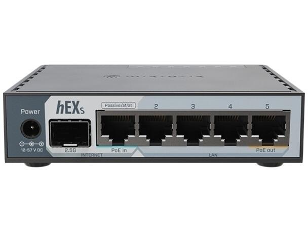 The MikroTik hEX S (2025) is a compact, truly budget-friendly wired router that does a little bit of everything — and does it fast. With 5× Gigabit Ethernet ports including 802.3af/at PoE-in on port 1 and passive PoE-out on port 5, plus a 2.5 Gigabit SFP cage for fibre uplinks, it’s an extraordinarily capable SOHO router. Powered by a dual-core 950 MHz ARM CPU with 512MB RAM and hardware IPsec acceleration, running RouterOS v7 Level 4 — professional-grade networking at an accessible price.