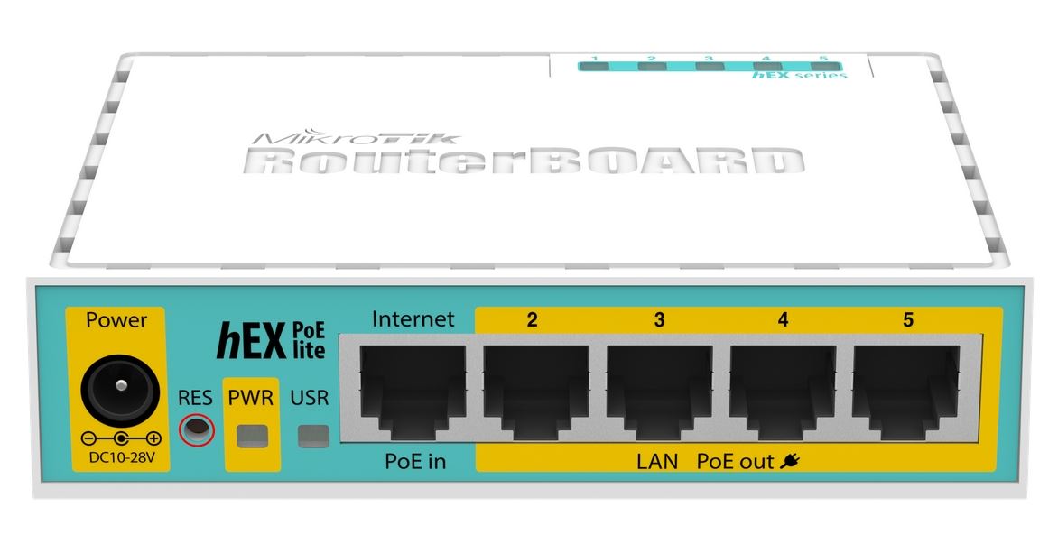 The MikroTik hEX PoE lite is a small five port Ethernet router in a compact plastic case, featuring a USB 2.0 port and passive PoE output on ports 2–5 — allowing it to power compatible PoE devices at the same voltage applied to the unit, with fewer power adapters and cables to worry about. Powered by a single-core 650 MHz CPU and 64MB of RAM running MikroTik RouterOS Level 4, it’s an affordable, highly configurable SOHO router ideal for wired home and small office deployments.
