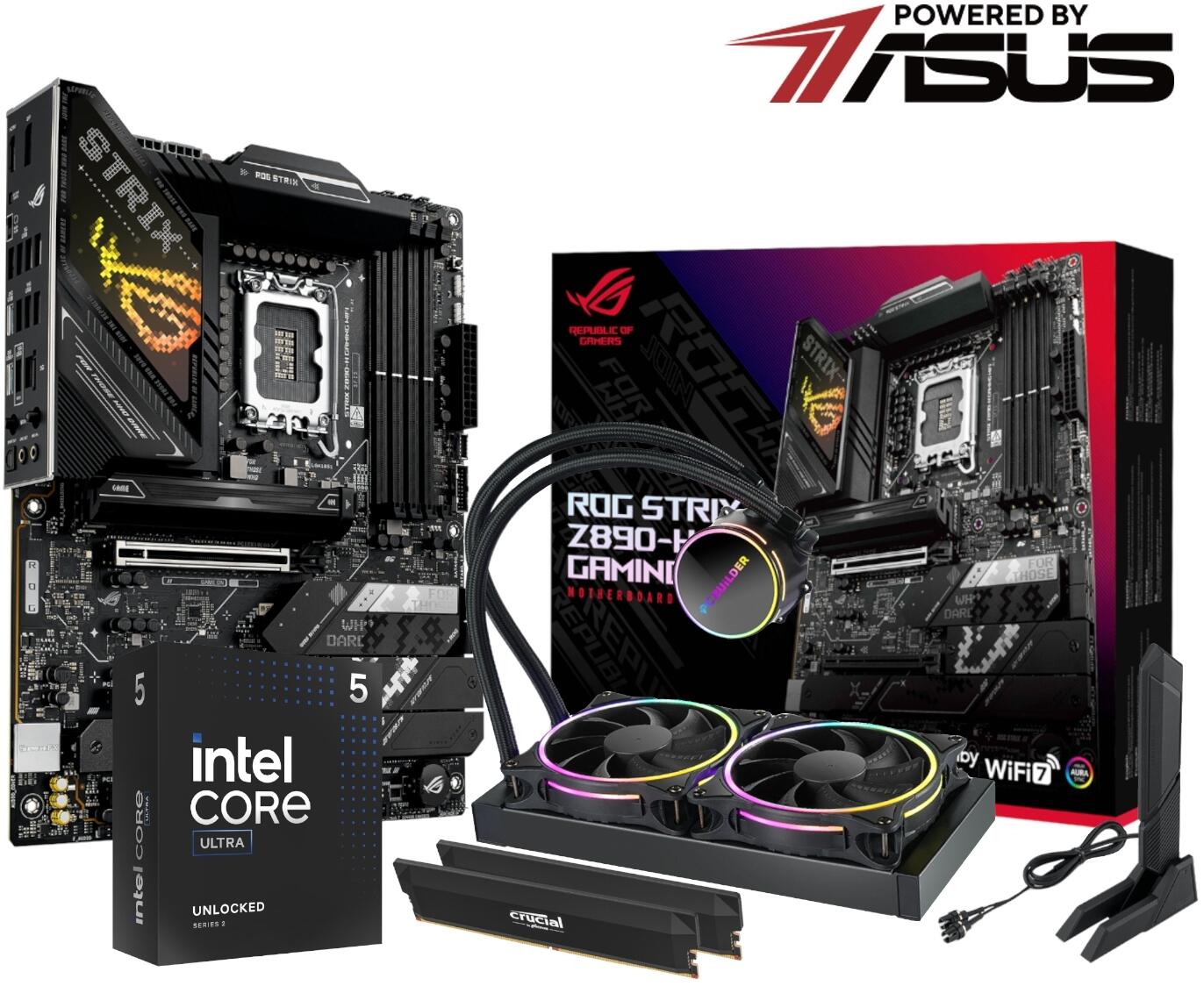 This high-performance Intel upgrade bundle puts the latest Arrow Lake platform at your fingertips. The Intel Core Ultra 5 245K delivers 6 Performance-cores and 8 Efficient-cores up to 5.2 GHz, with Intel Thread Director dynamically assigning workloads to the right core at the right time, paired with the ASUS ROG Strix Z890 Gaming WiFi — a feature-rich Z890 ATX motherboard equipped with Thunderbolt 4, PCIe 5.0, Wi-Fi 7, and ASUS AI Overclocking, 32GB of Crucial Pro DDR5-6400 dual-channel memory at the sweet spot speed for next-gen multi-core CPUs AMD, and a 240mm AIO liquid cooler — ready to run from day one.
